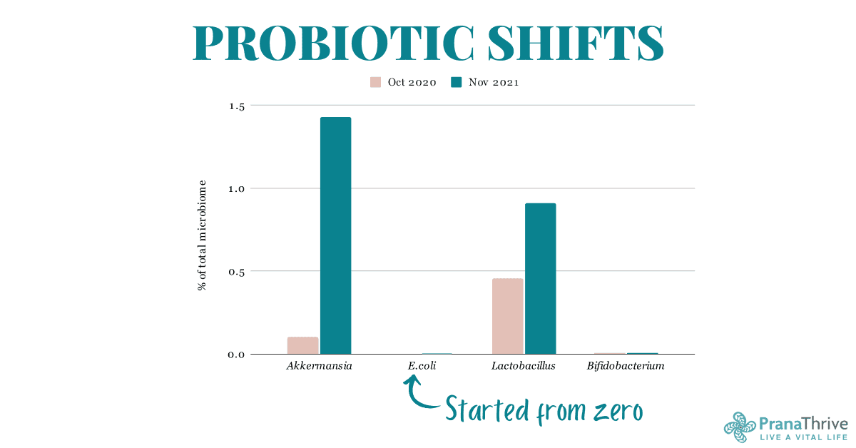 Victoria's analysis identified that Matthew's existing probiotic supplements weren't matched to his specific deficiencies. His test showed which strains were actually depleted and which inflammatory species were elevated — information that allowed for targeted intervention rather than generic supplementation.