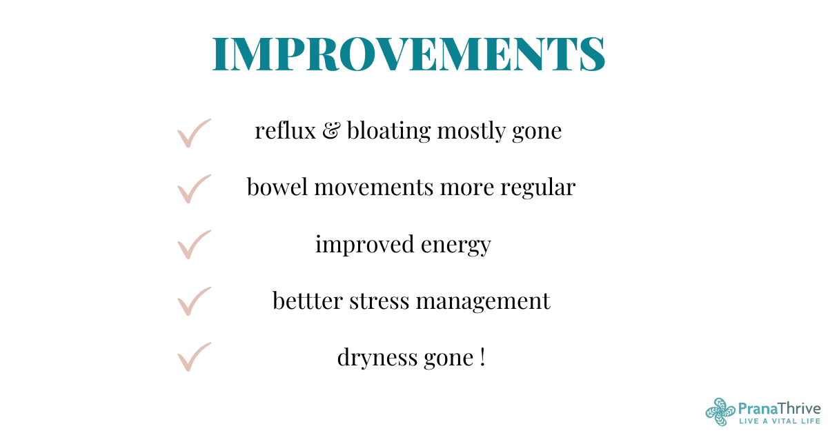 Her IBS score had reduced, indicating lower inflammation and improved digestive function.
