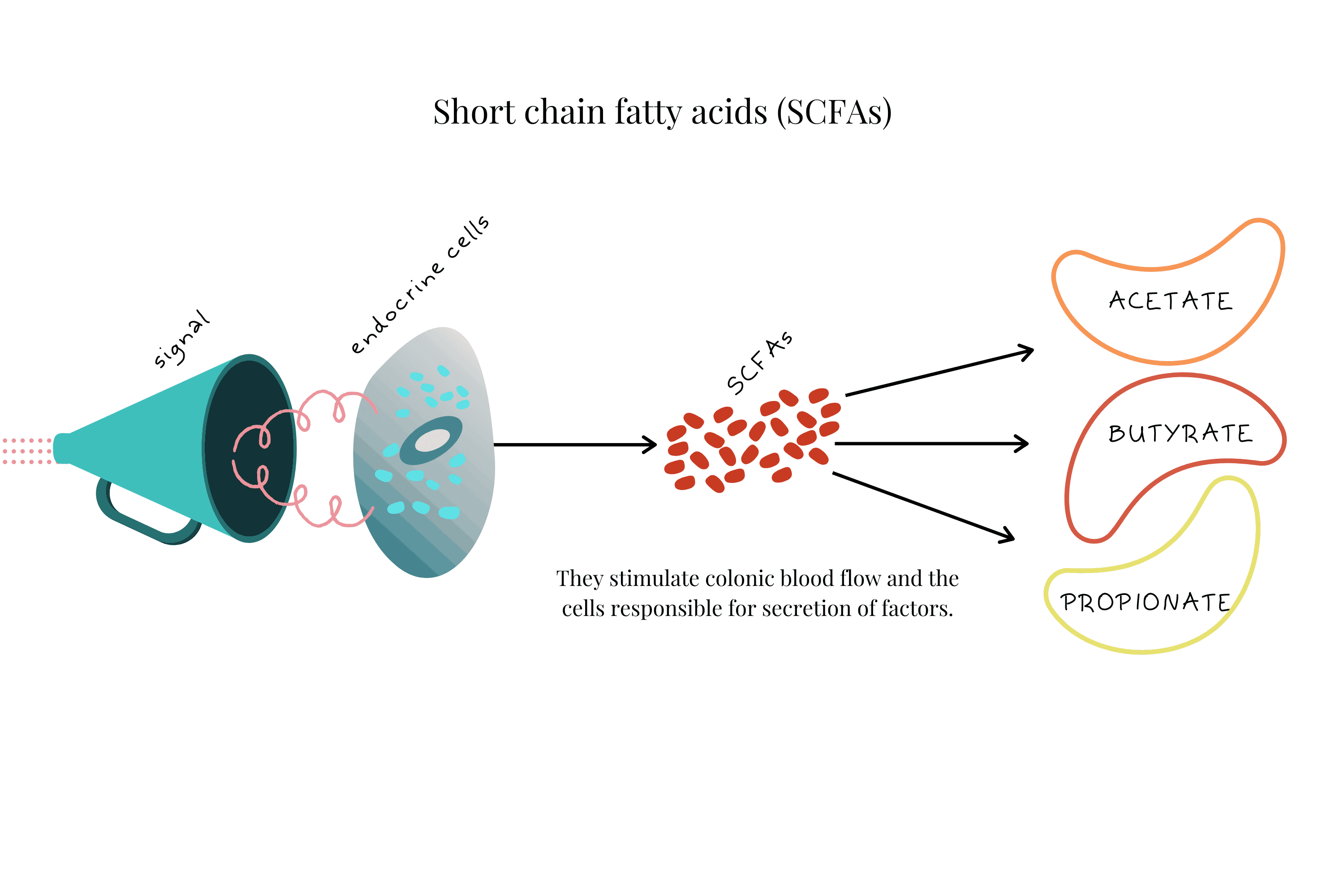 Both of these mechanisms often involve the vagus nerve. And both need several microbial metabolites, including short-chain fatty acids (SCFAs), secondary bile acids (2BAs), and tryptophan (Trp).