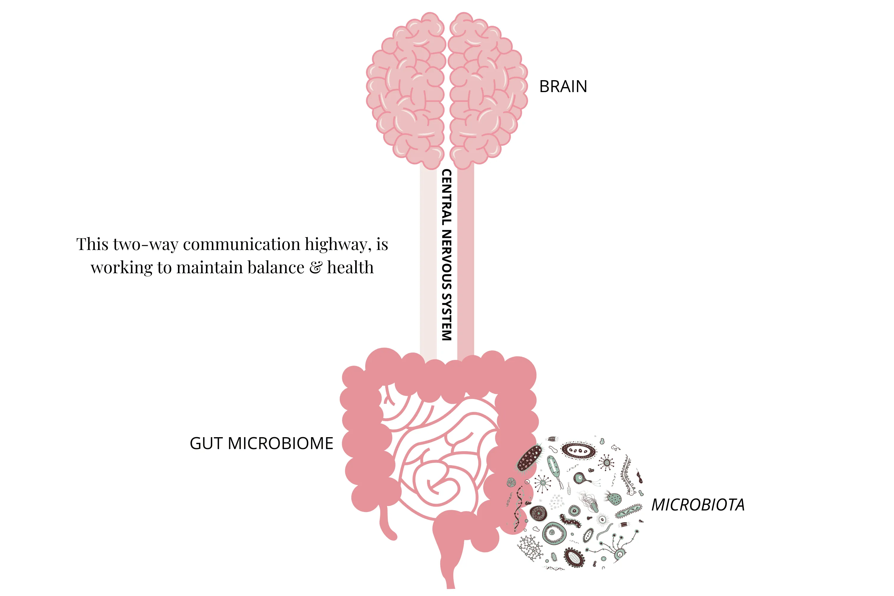 Each of these names describes the gut-brain connection between your gut, its microbiome, and your central nervous system (CNS—your brain).