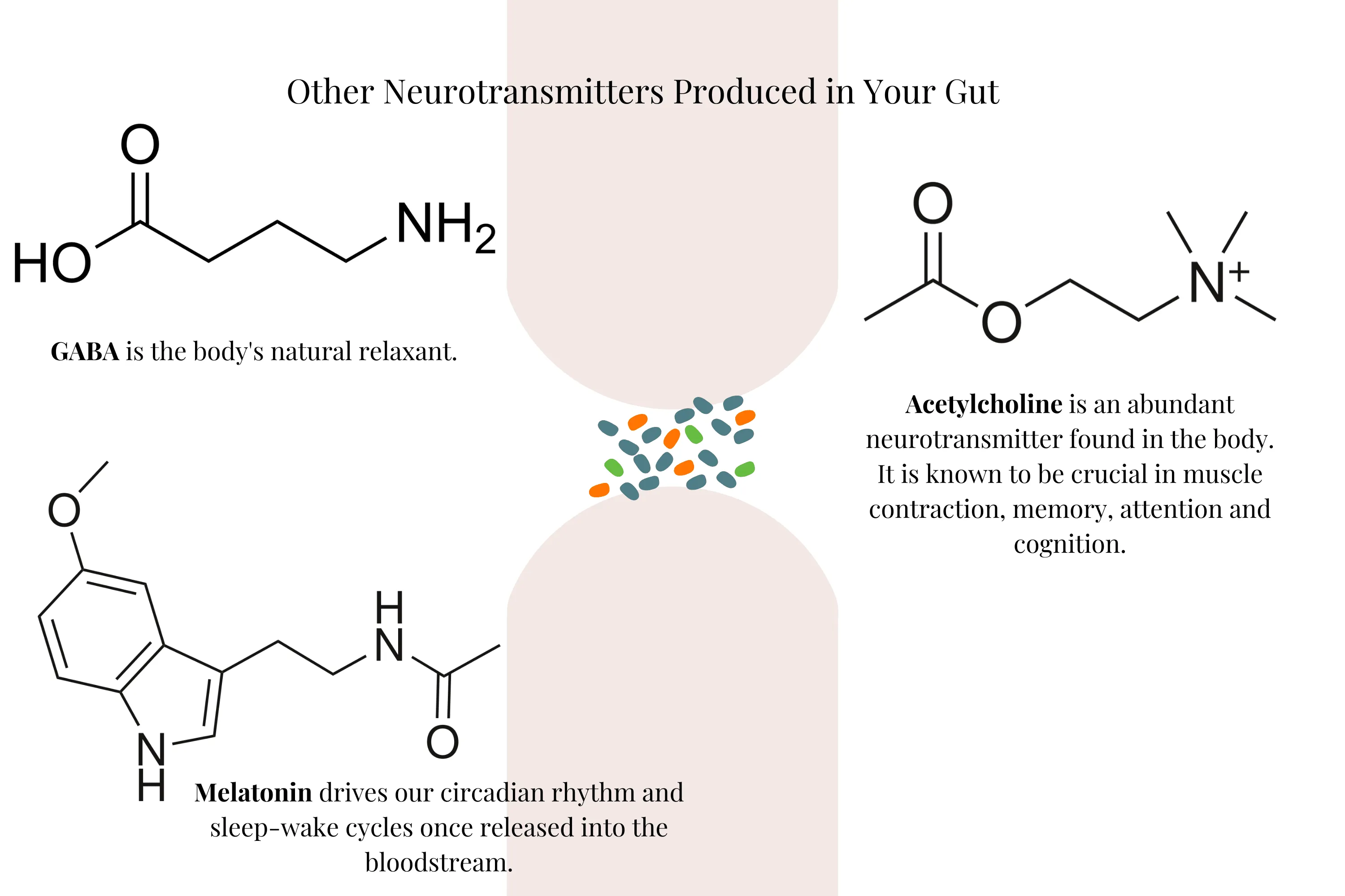Neurotransmitter production — Gut bacteria produce 90% of your serotonin, plus GABA, dopamine, acetylcholine, and melatonin