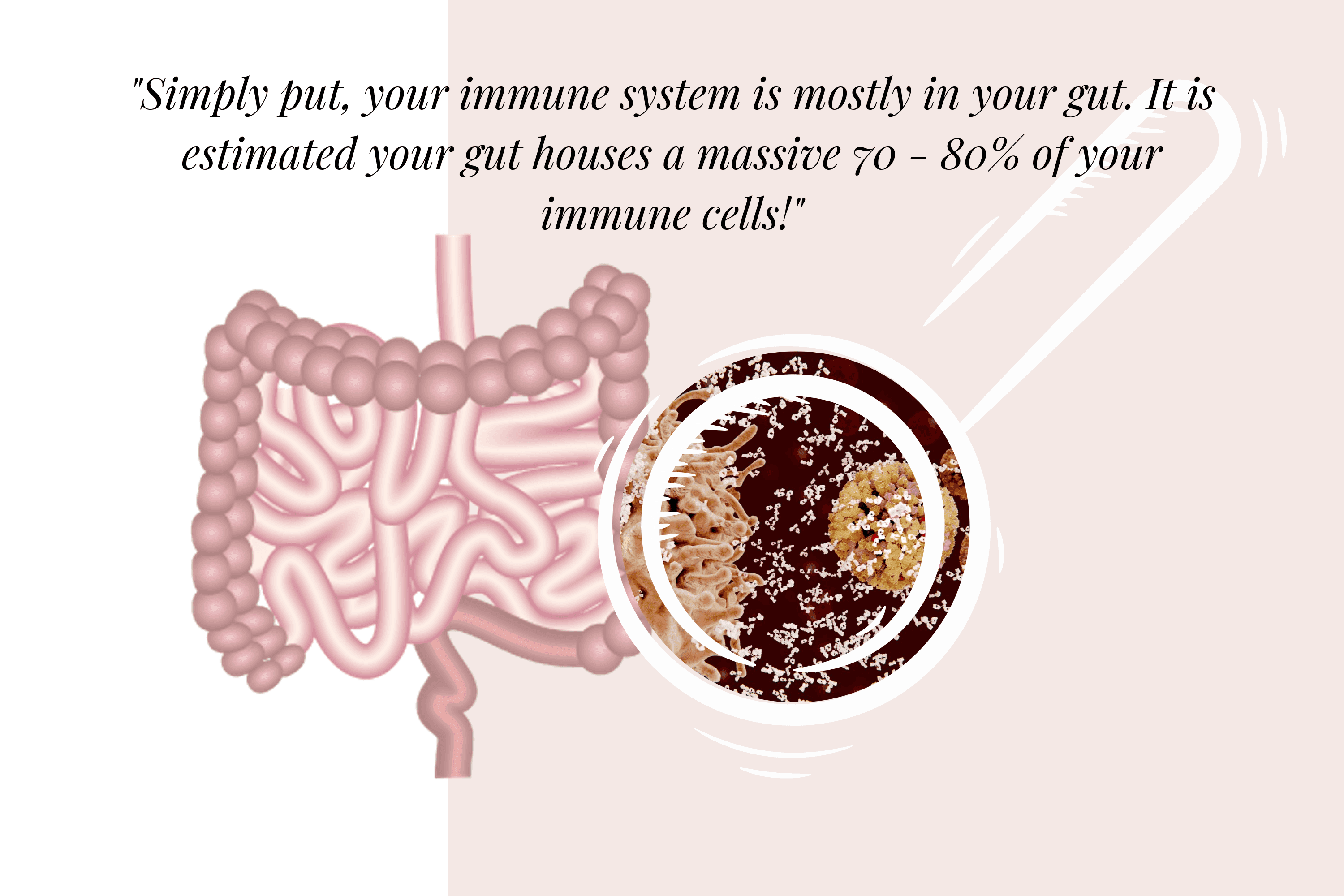 Simply put, your immune system is mostly in your gut. It is estimated your gut houses a massive 70 – 80% of your immune cells!