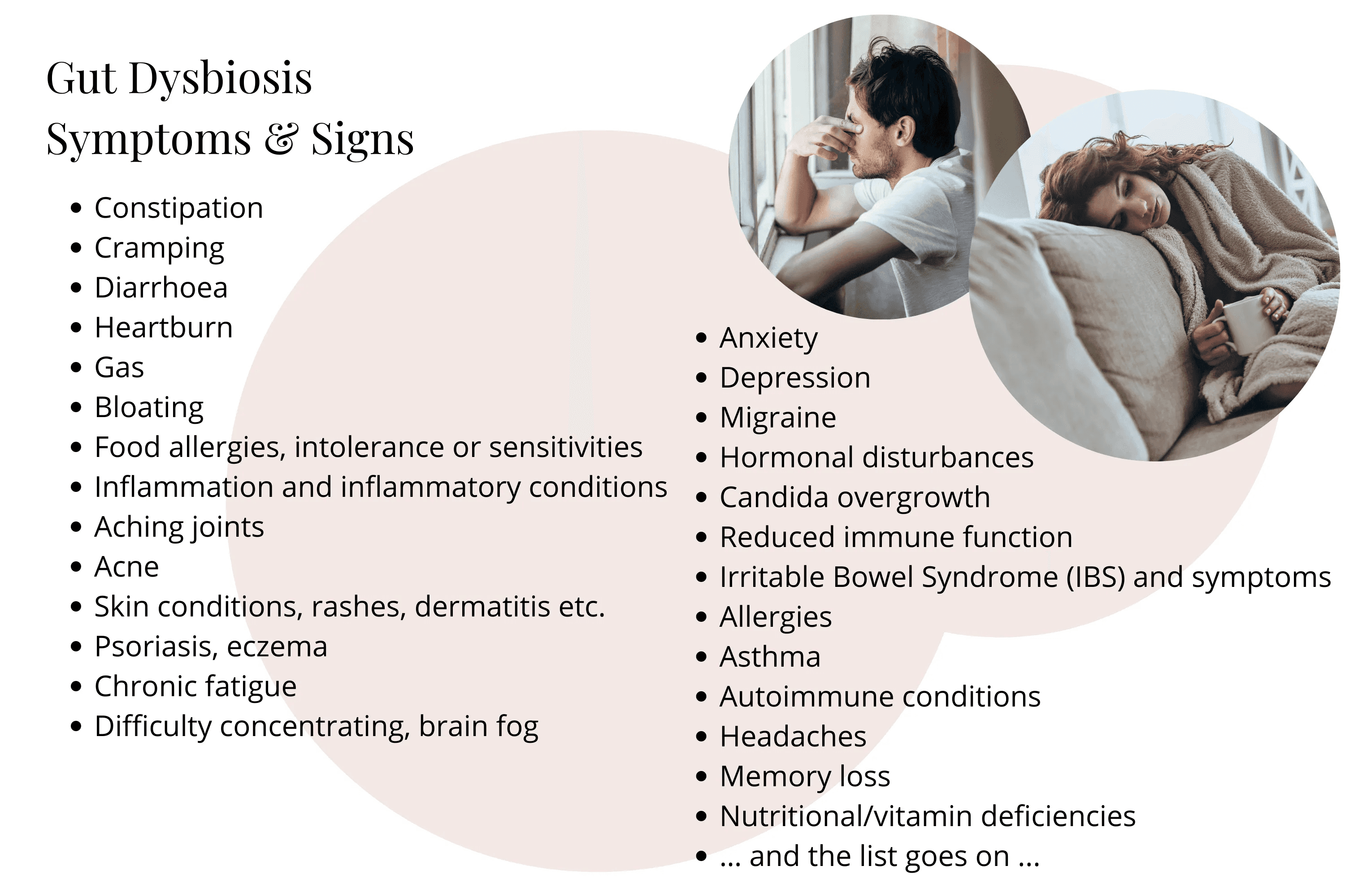 It's because of this interconnectivity that gut dysbiosis causes a huge range of effects and a similarly huge range of signs and symptoms.