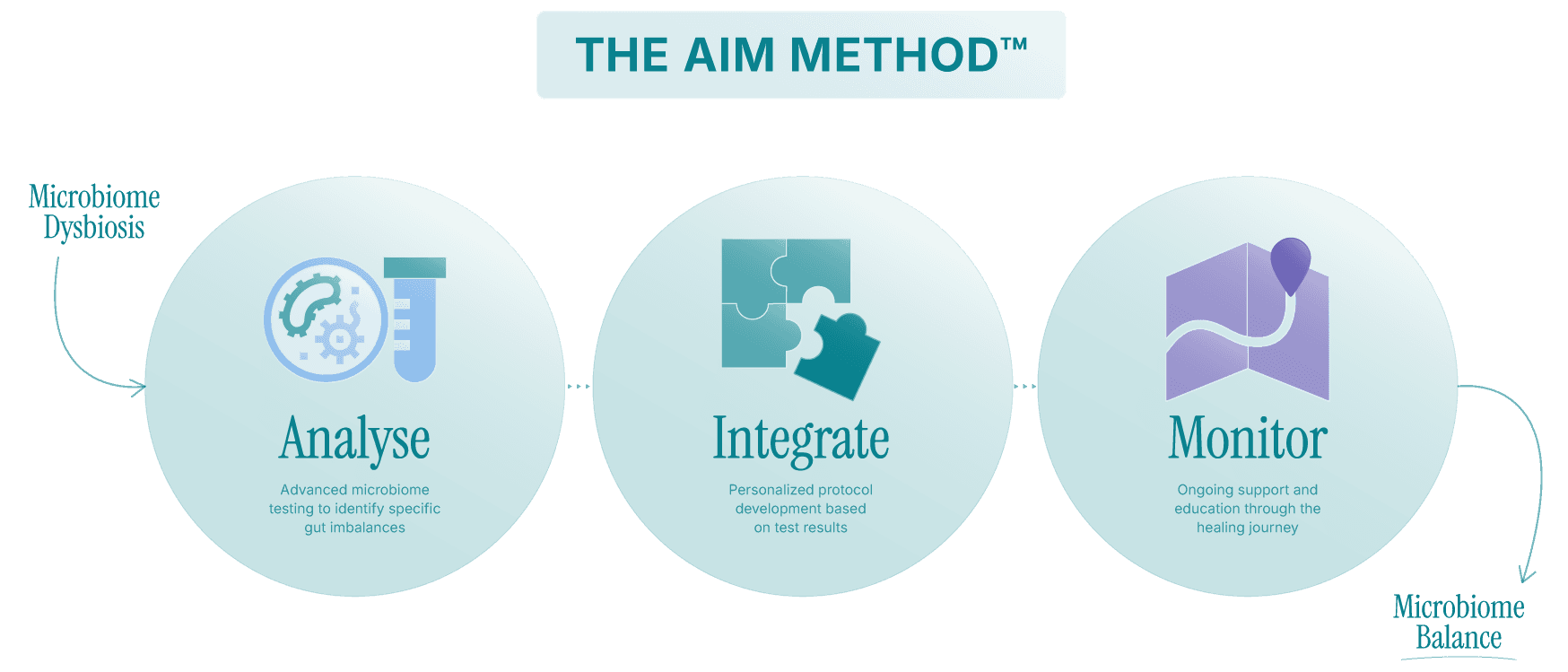Our proven AIM Method™ has helped over 2,000 clients heal complex IBS cases. Unlike conventional approaches that just manage symptoms, we use a systematic three-phase process to identify your root cause and guide you to lasting healing.